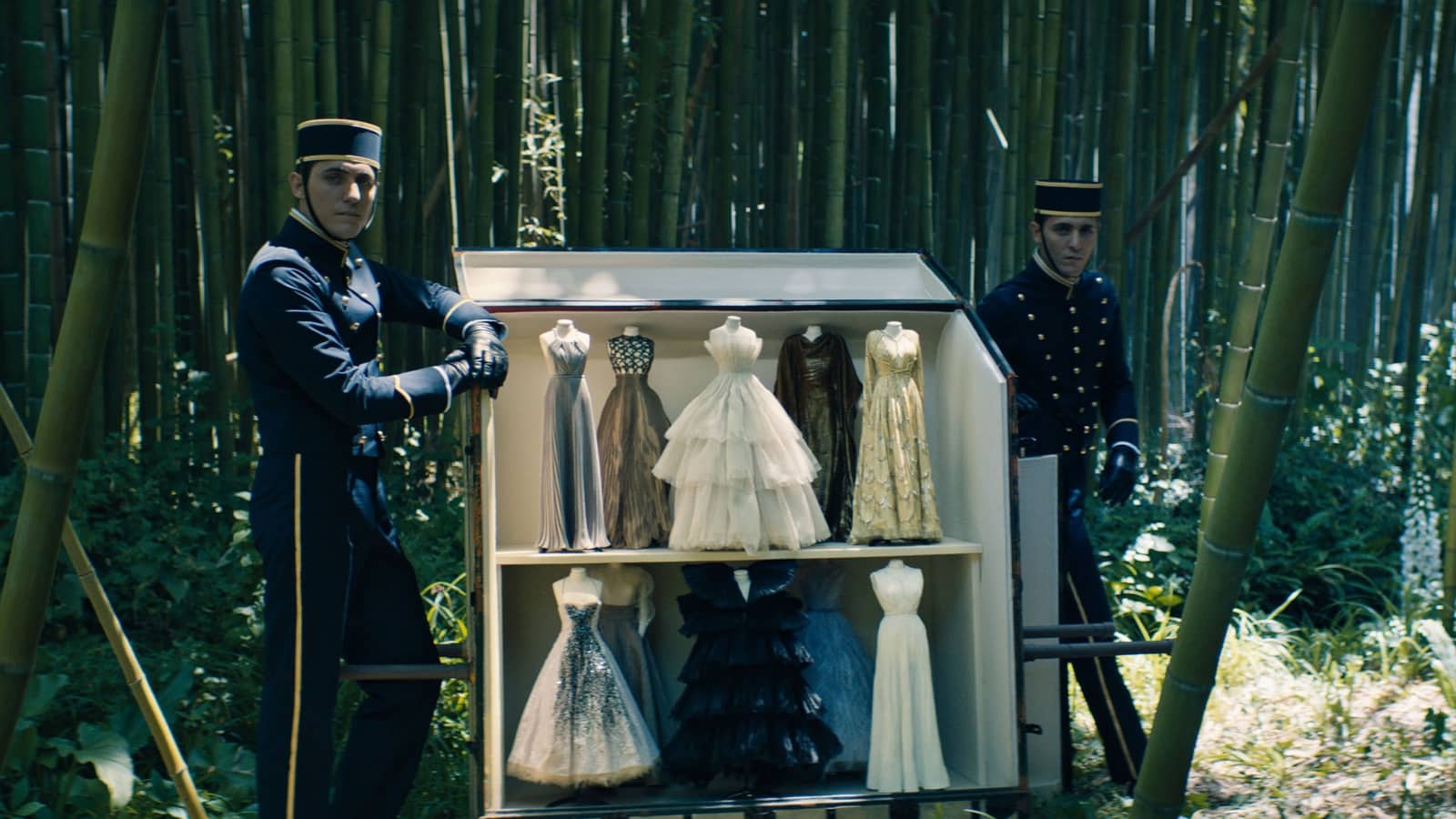 And then, in the best way of all, a number of key looks from the collection were created in miniature on mannequins 40cm tall. The outfits were made painstakingly to scale, constructed fully with the technique and detail of their full-sized counterparts. In Garrone’s film, these are delicately placed and carried around in a magical trunk modelled after the house’s historic 30 Avenue Montaigne building. The creatures of the forest take their pick from the offering, and so the story goes.